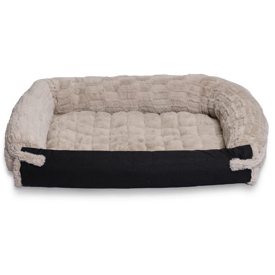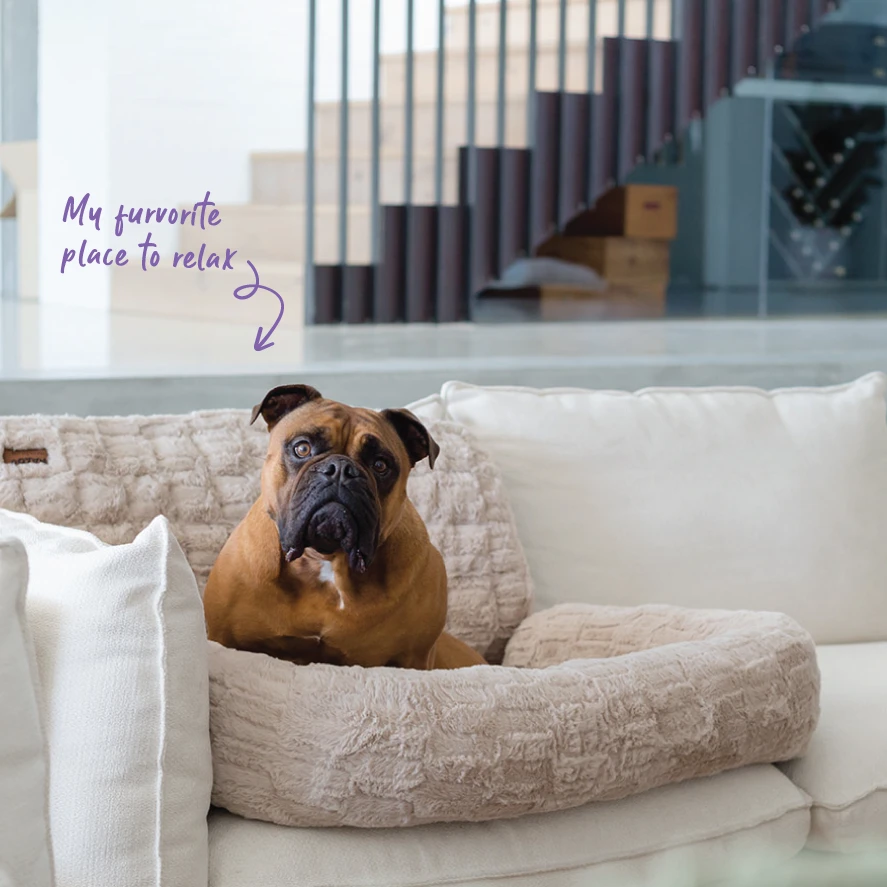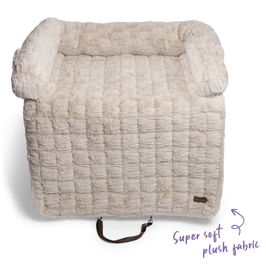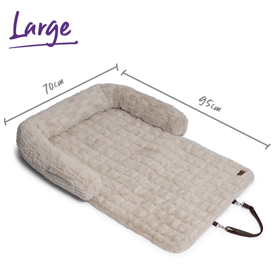 This honey beige convertible pet bed is ideal for travel or everyday pet life. Pop it on the couch to create your very own happy place, or roll up the edge to create a pet bed that you can easily move around the house.