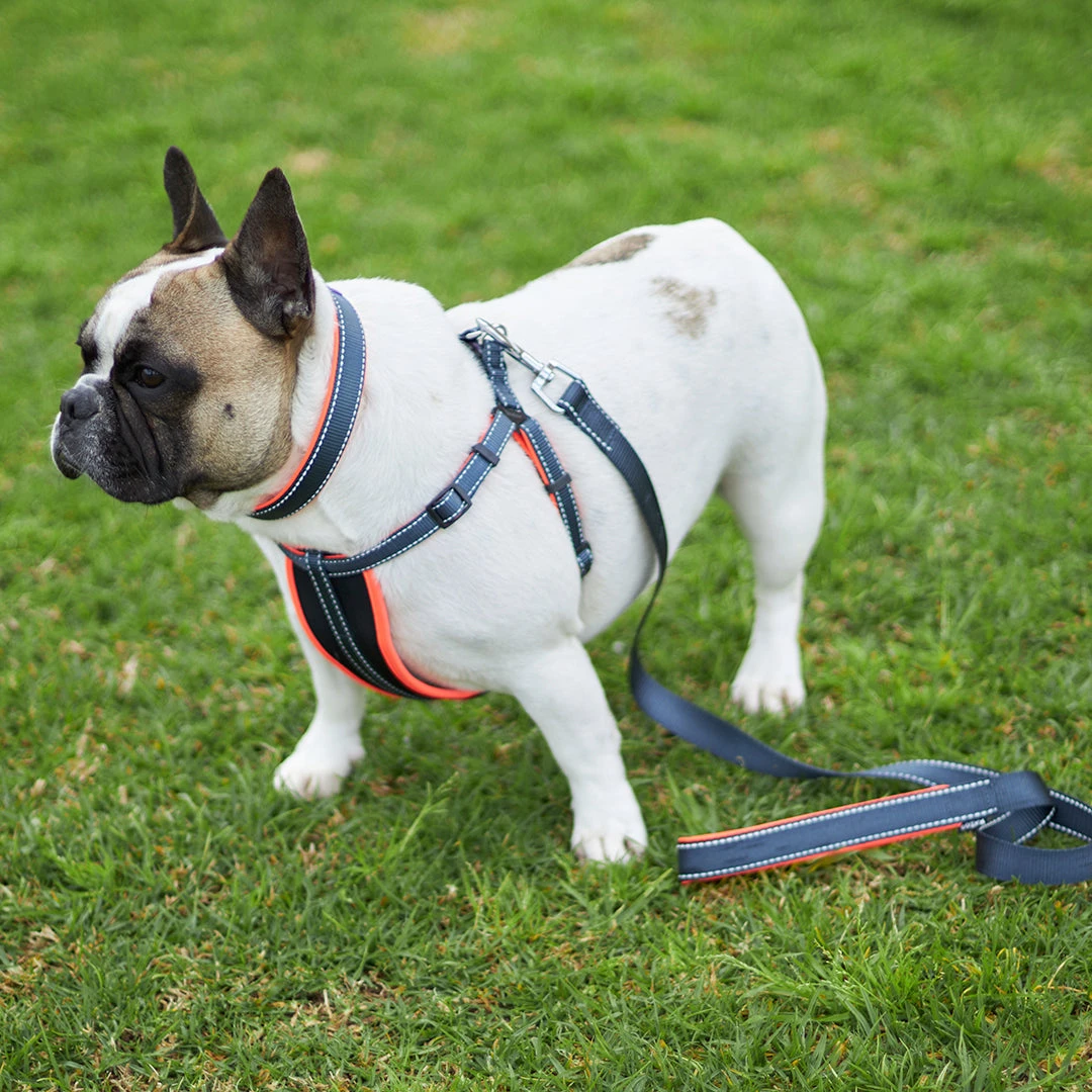 This stylish slate and orange number is made of high-quality strong nylon and heavy-duty nickel hardware. And because the best kinds of walkies have more adventures than a hooman action movie, my lead is also super strong and comes in two different sizes of length and thickness.