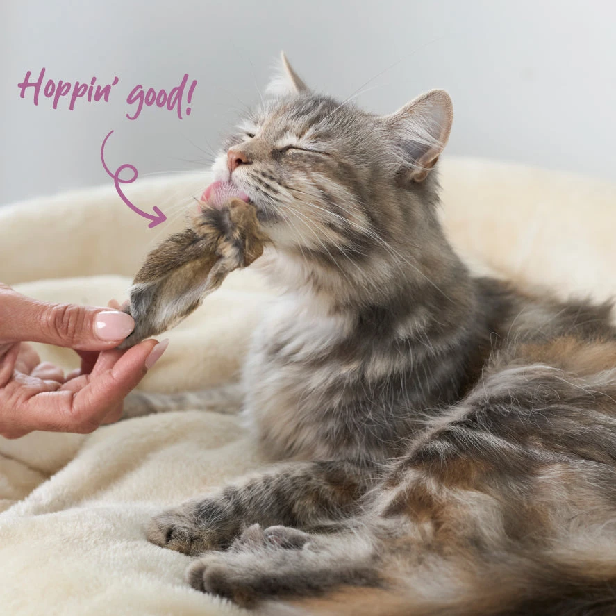 But what makes them leaps and bounds above other snacks is their play value. Cats love to play with their food before they eat it, and these furry rabbit ears excite their curiosity whilst whetting their appetite at the same time.