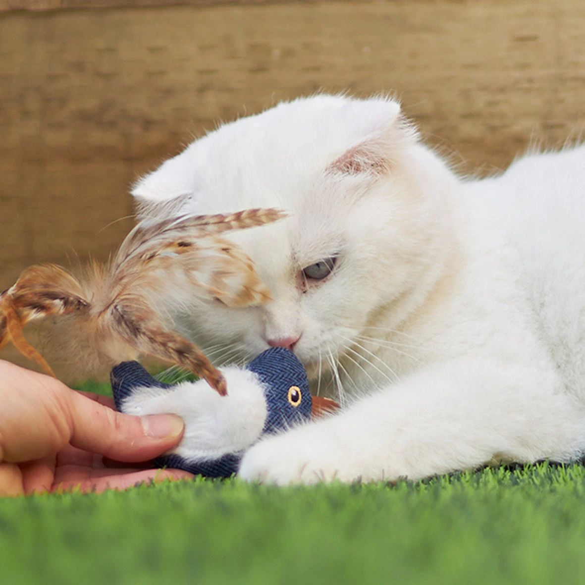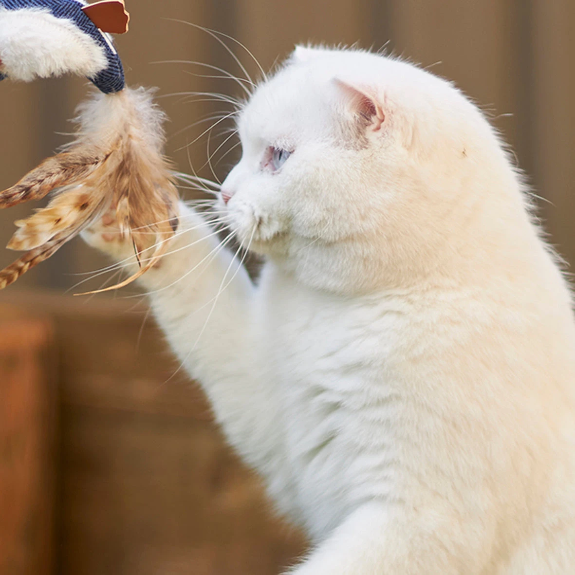 You know what I love about birds? They’re fun to chase, hunt and chew! I’m an indoor kitty, so this bird is designed purely for my pleasure. It’s a bird that I’m actually allowed to hunt. The chirps really get me excited and stimulate my natural urge to chase and play.