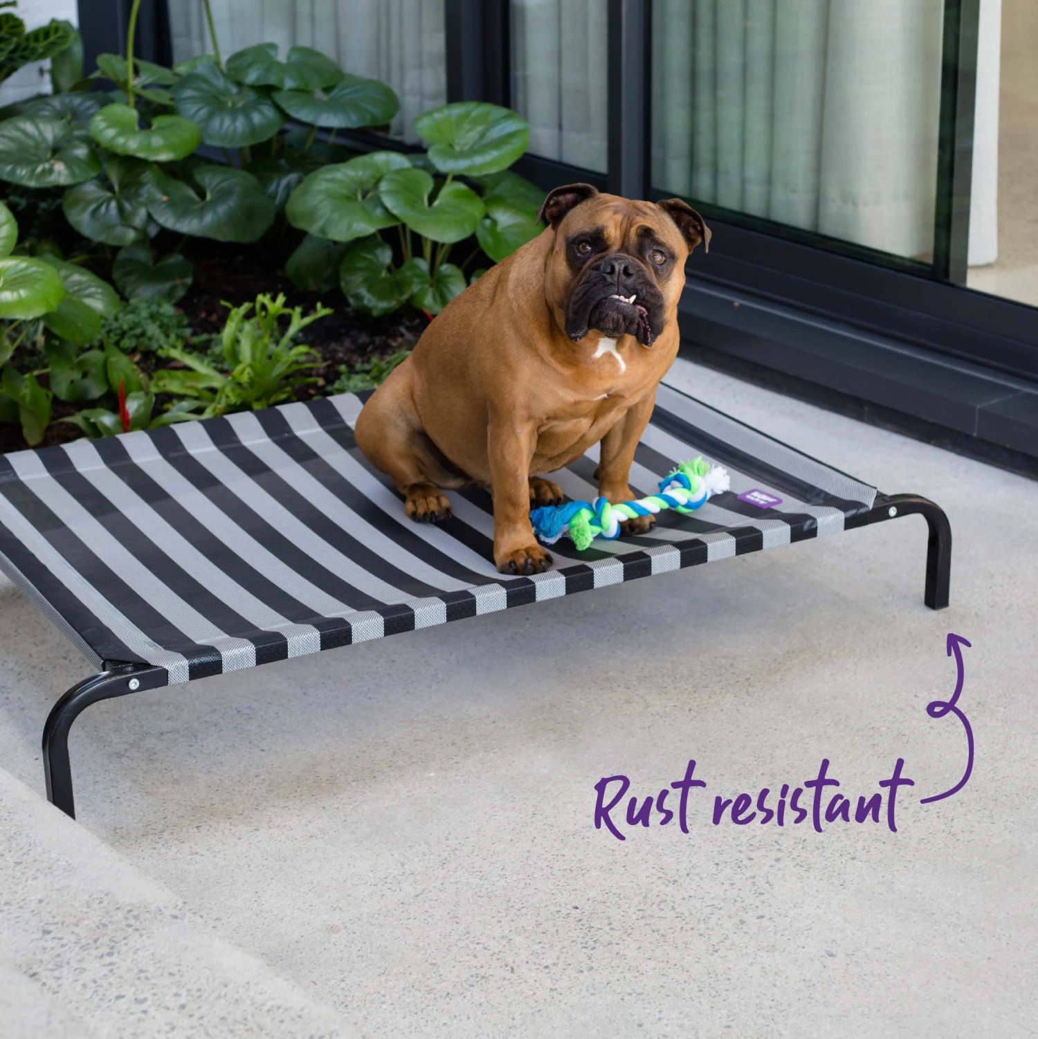Pawfect for dogs from large to small, the raised frame is ideal for older dogs and allows full breathability from every angle. Create a comfortable space on your verandah, porch or in your backyard with this strong outdoor dog bed. You can also order replacement covers to save time and money, rather than replacing the entire bed. If you need to add some cushioning comfort, our Comfy Outdoor Dog Bed Cover is a perfect fit.