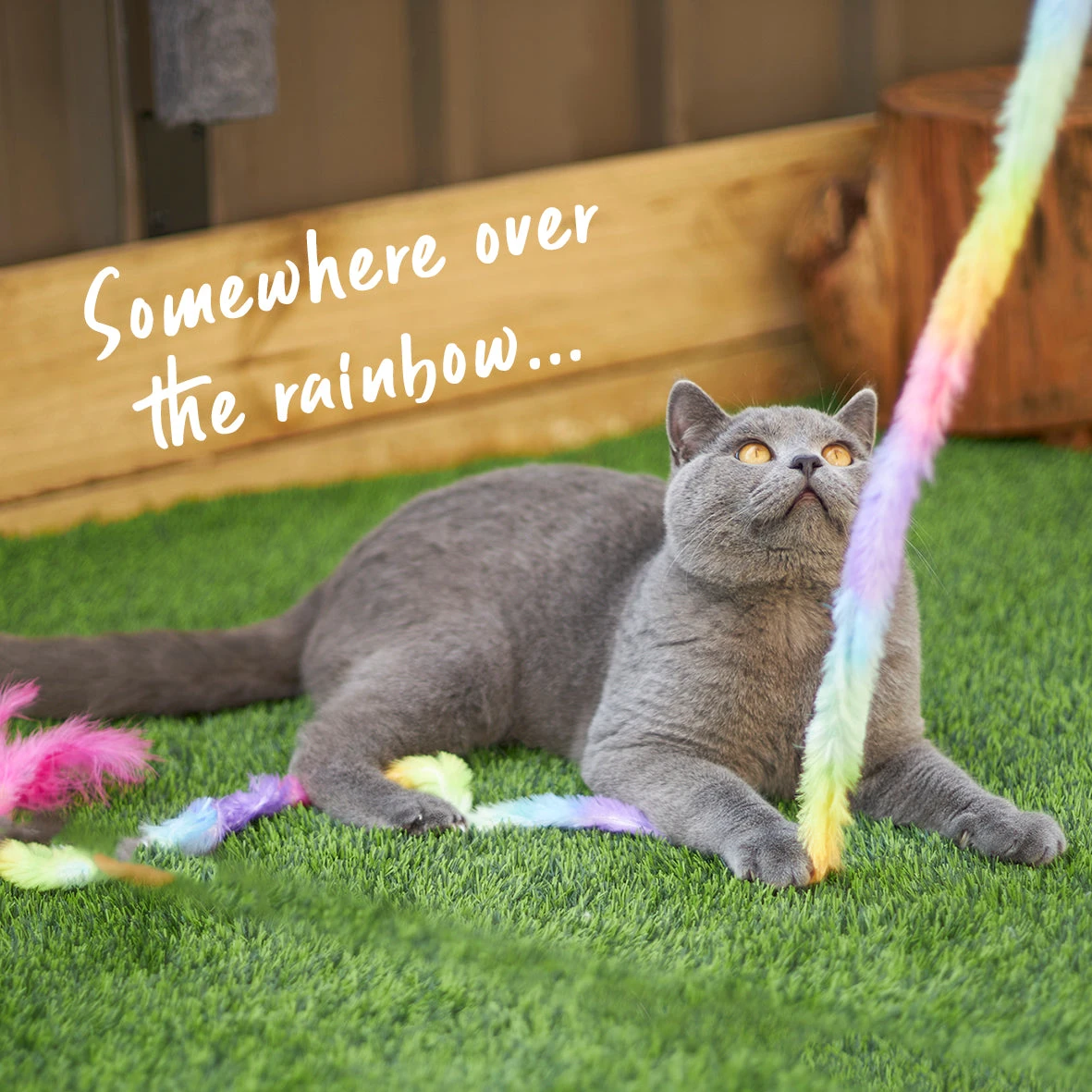 This magical rainbow tail has an interactive design and fun fluffy texture that triggers our natural instincts to chase, prowl and pounce. And when we’re not being fierce urban tigers? It’s also the pawfect way to reel in our favourite hoomans for some quality playtime bonding.