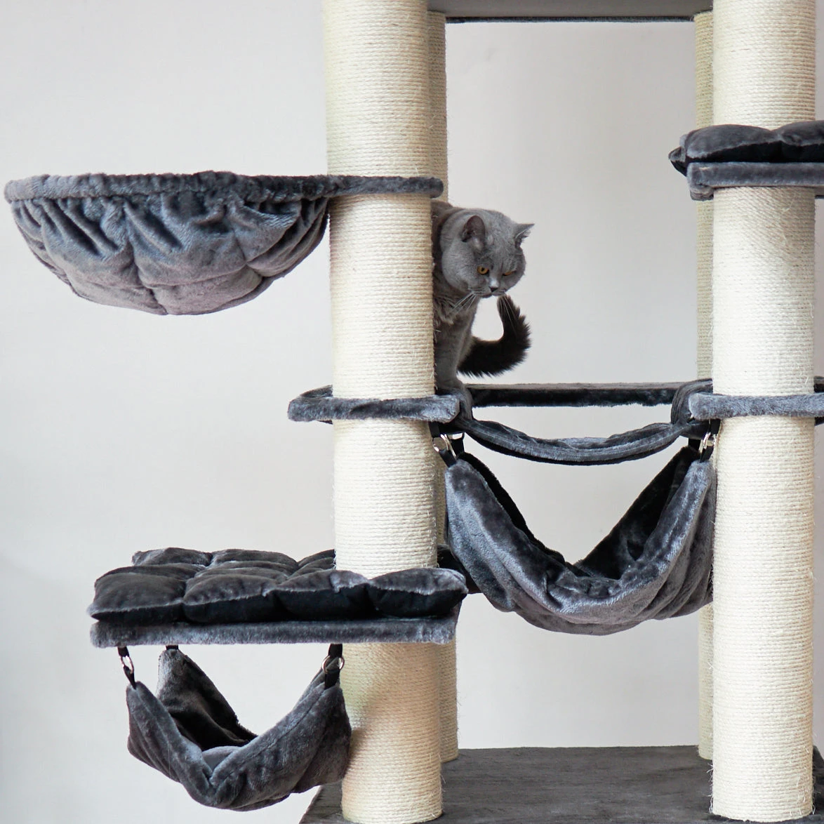 Features include scratch posts, hammock beds, basket beds, a private snug at the bottom and a hanging rope. Honestly, there’s so much going on that I can play for hours without pawsing.