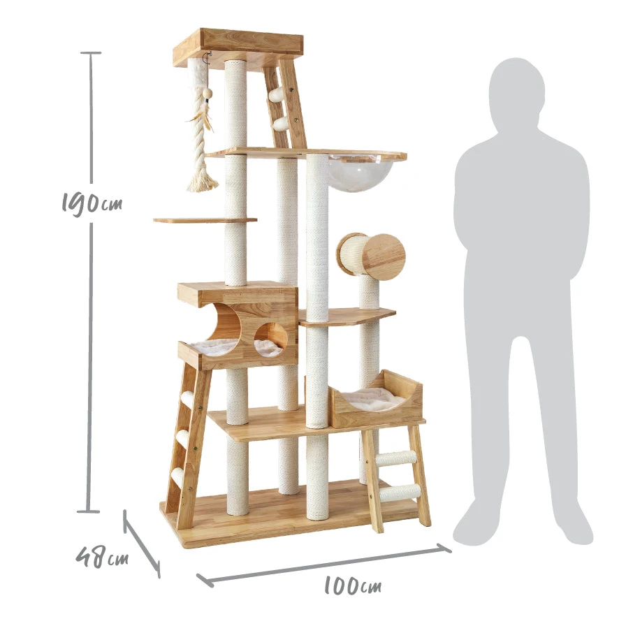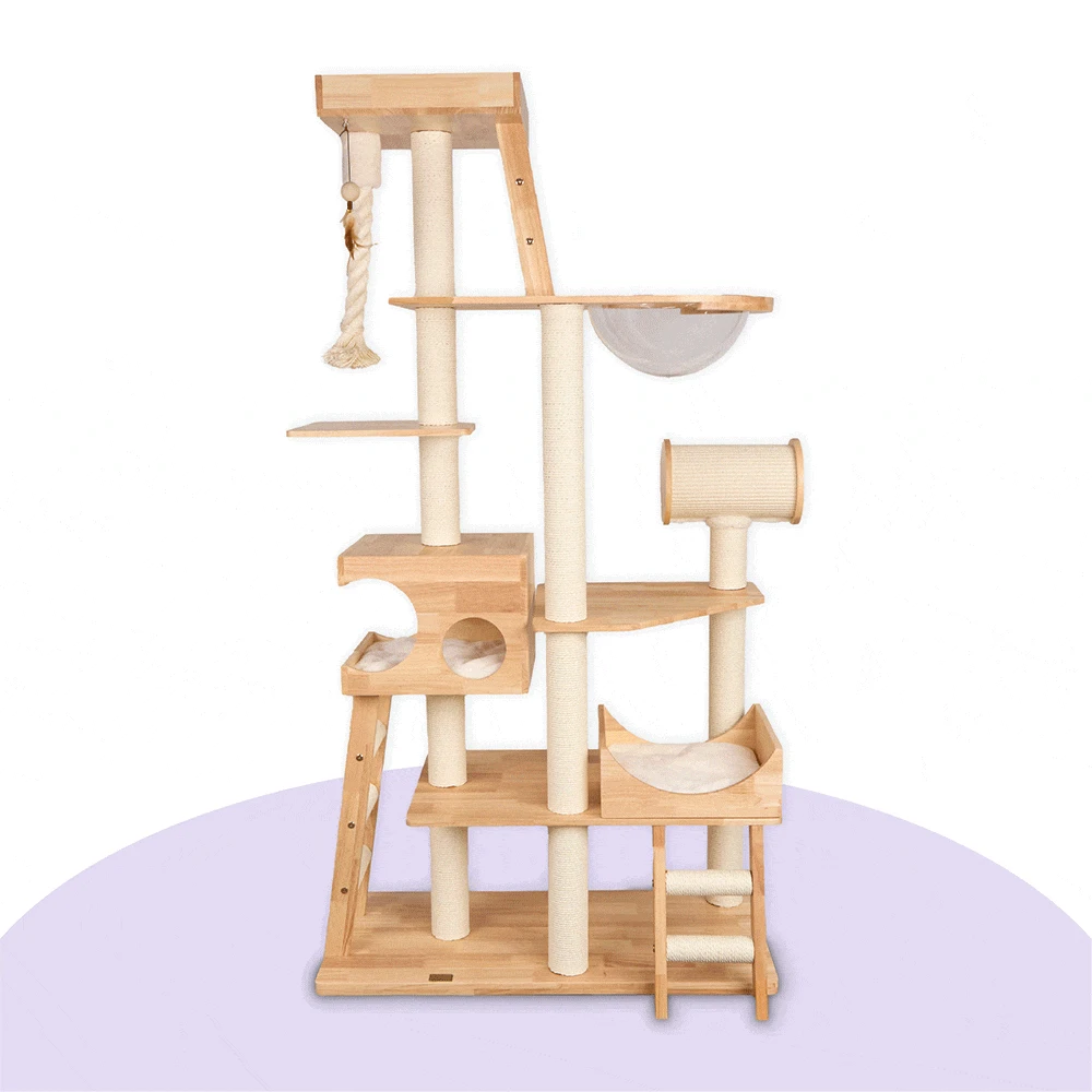 There are five levels for me to explore, offering a whole world of enrichment to keep me in fit feline form, plus cosy plush resting places that help me feel safe and warm.
