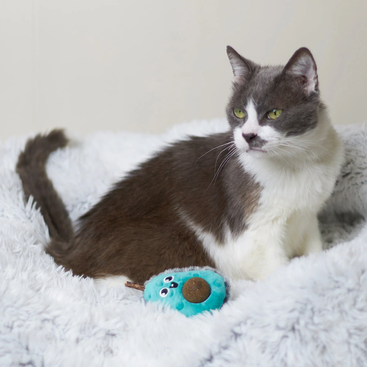 I’ve heard humans like smashed avo? Well I’m not sure about smashing this guy but I sure do love my cute avocado toy! With a plush design that looks good enough to chew, it even has a special surprise for playful kitties: The stone is made from natural catnip which can help anxious pawsonalities bliss out on feel-good vibes.