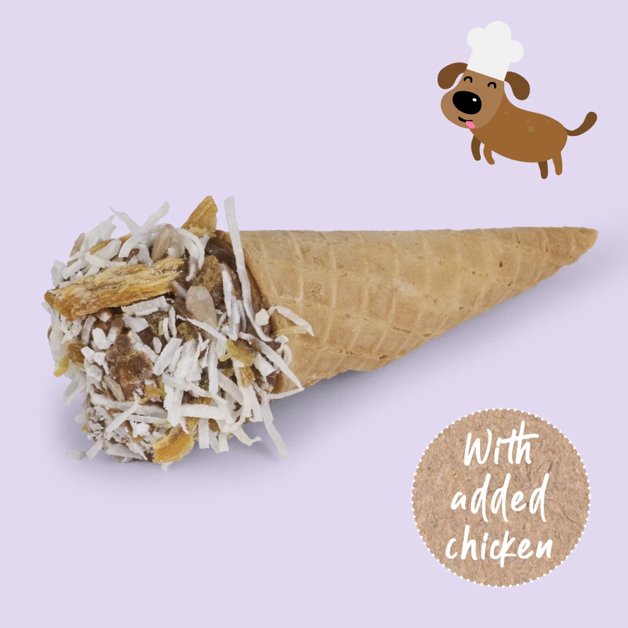They may look like a cornetto, but they are made with ingredients that you probably wouldn’t want in your ice cream. Beef liver chips, air-dried chicken breast and pumpkin seeds. But whilst you might not lick ‘em, we guarantee your pooch will.