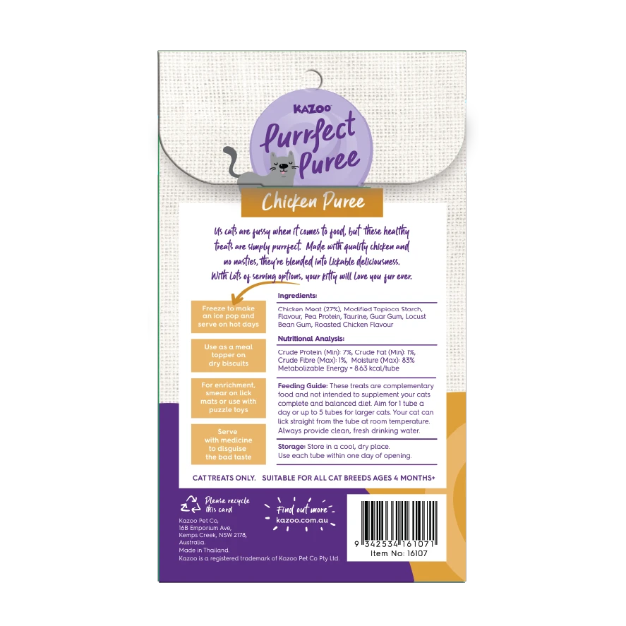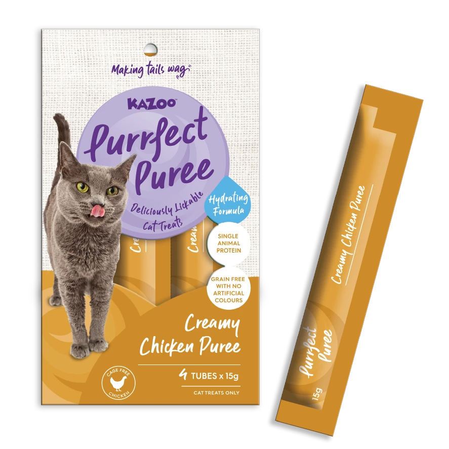 Cat puree treats are beloved by the kitty community for their versatility and success rate with fussy cats. Not only can you feed them straight from the tube, you can use them as meal toppers, on lick mats, to coat medicine in, or even frozen as a treat to keep cool on hot summer days.