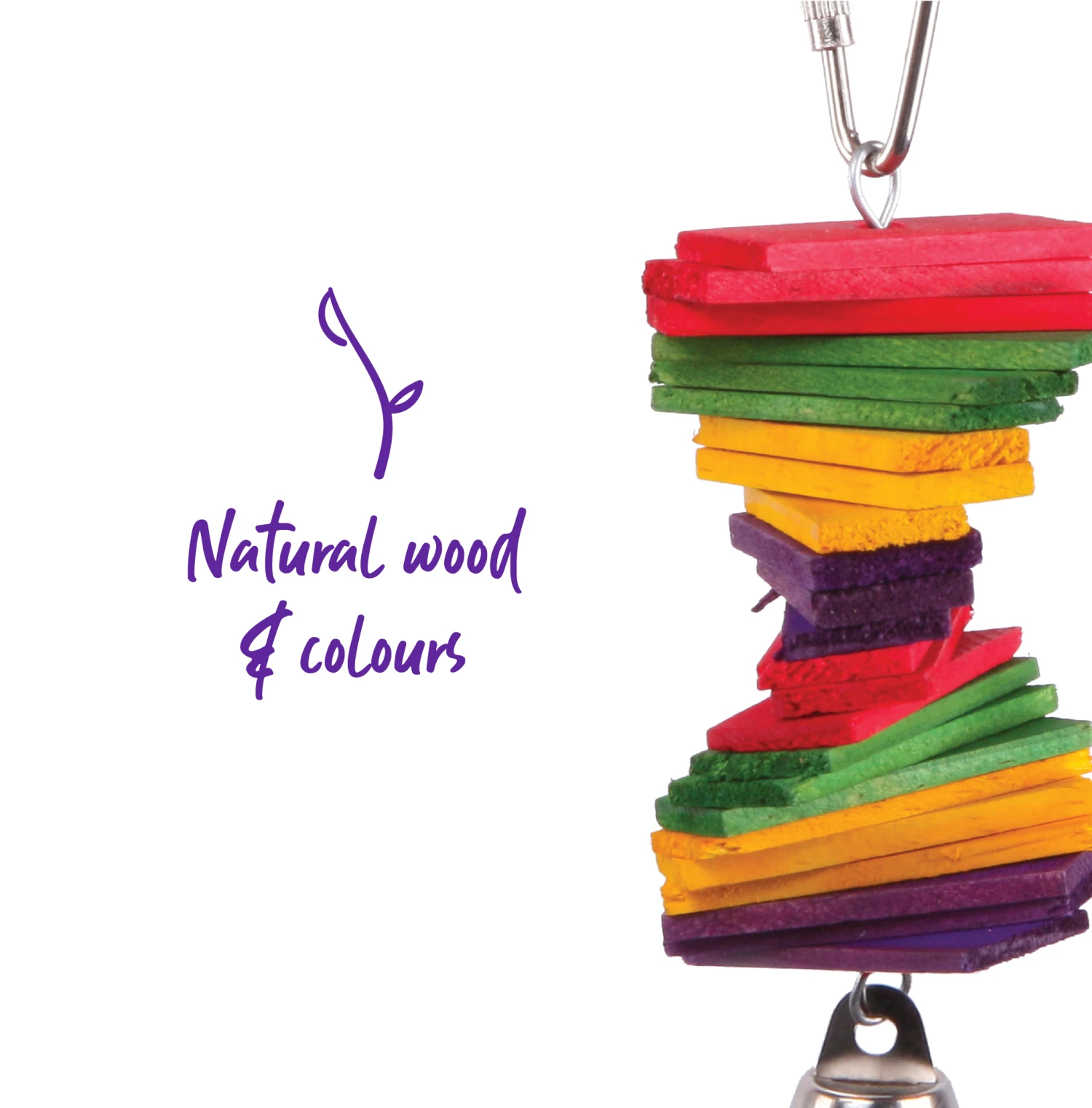 This toy provides textures and shapes that birds may encounter in the wild. It’s designed to suit various sizes and cages, creating surfaces your feathery friend can climb, which is great for their muscular development. Fantastic for keeping your bird mentally sharp and entertained!