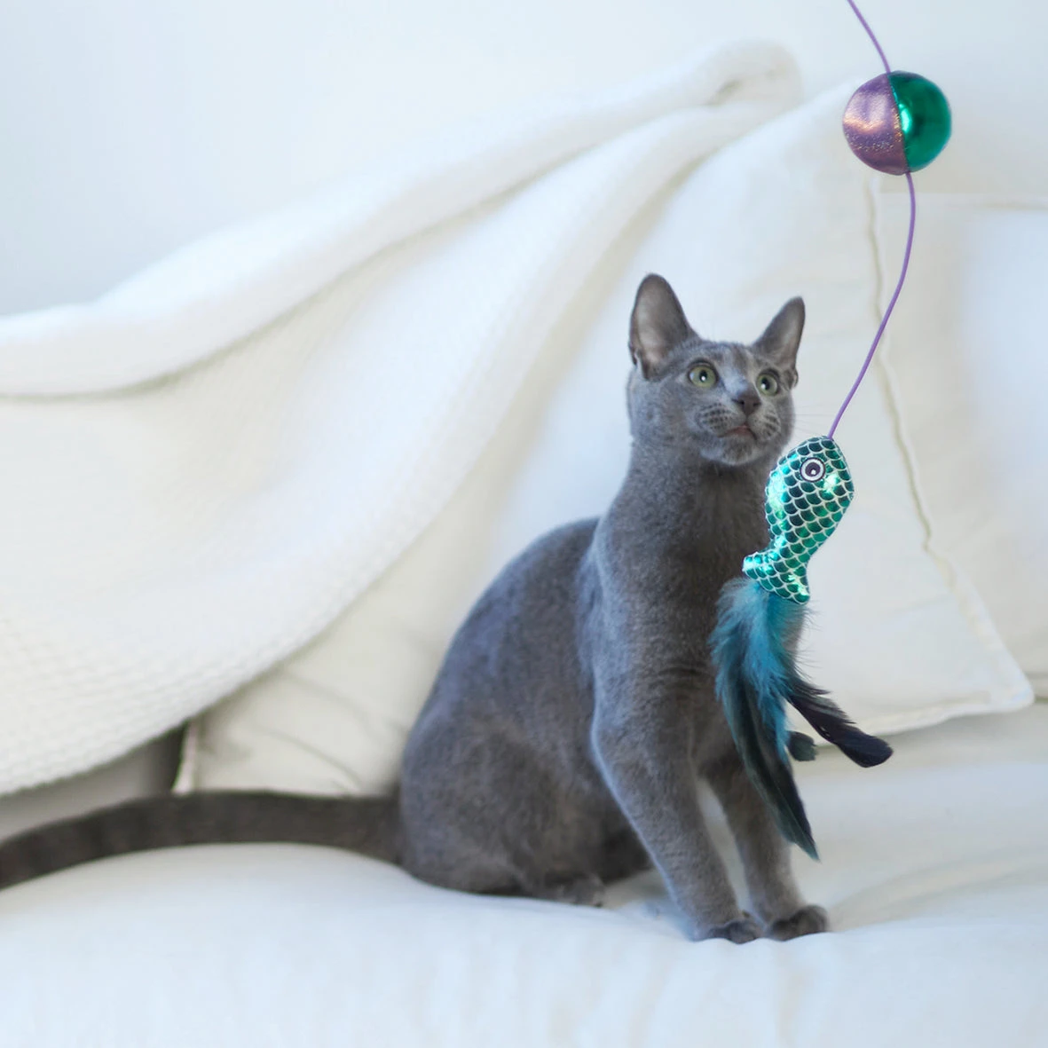 Oh I love fishing and this fishy toy is pawfect for play too! With its interactive design and fun feathery fish, this Play Wand keeps boredom away like magic by triggering our natural instincts to chase, prowl and pounce. Oh, and did I mention that it’s also the pawfect way to reel in a hooman for some quality playtime bonding?