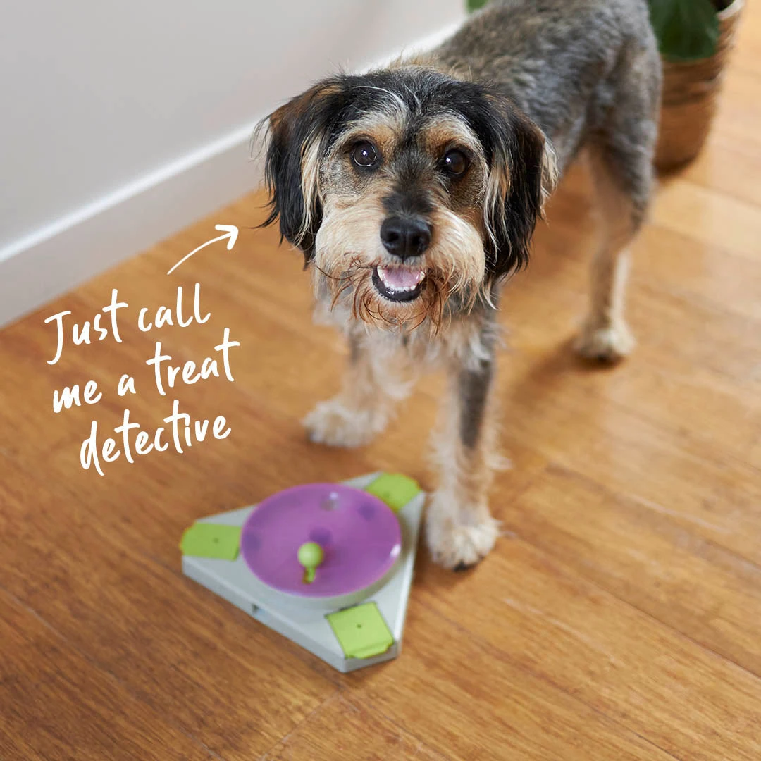 This triangle-shaped slow feeder has a non-slip base so you won’t be knocking it everywhere while you play, plus has three snack pockets for your hoomans to hide your cat treats.